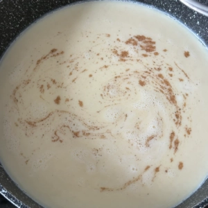 - Gradually pour the cold milk into the roux while vigorously whisking.1 Lt Milk