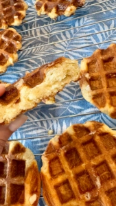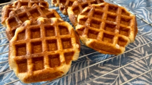 - Using a fork, carefully remove the waffle from the iron. Repeat with the remaining dough balls.