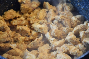 - Heat the pan on a medium high heat and pour the marinated chicken in it and cook until the chicken is well cooked.